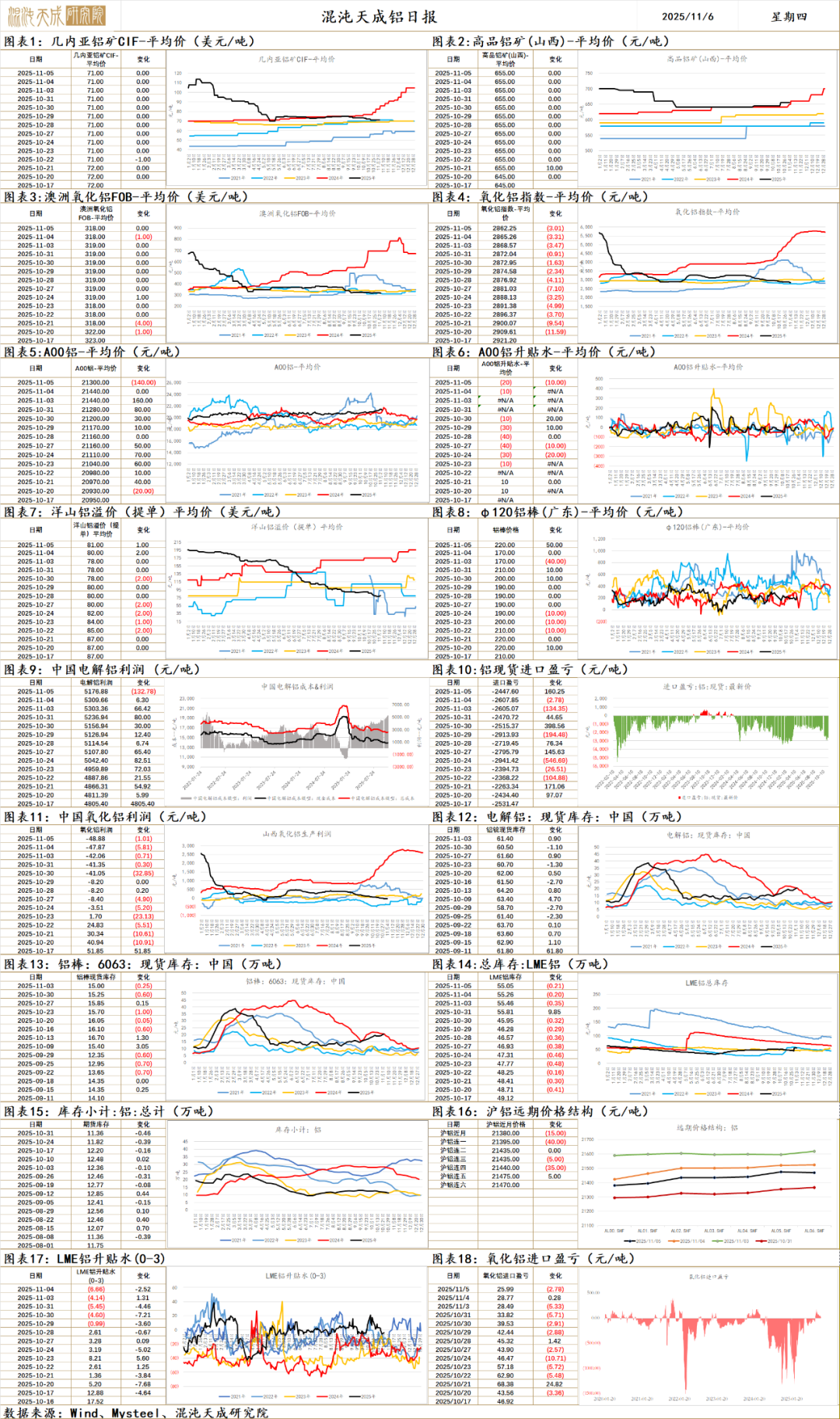 整体来看,美国政府停摆时长超预期,流动性风险隐隐抬头,12月降息预期降温,美元指数上行,基本金属承压,美国10月ADP就业人数 4.2万人高于预期,短期衰退担忧减弱,铝价仍有支撑。铝供应增量已步入低增速阶段,需求一旦启动,价格弹性是比较高的,同时世纪铝业因故障减产(-20万吨),Mozal因电力问题明年计划减产(-26万吨),明年供应增量再度下修,中长期仍低多。氧化铝政策预期落空,过剩格局长期难有改变,可轻仓逢高空2605合约,目标价2700,风险点为国内产能出清政策和几内亚矿端扰动。