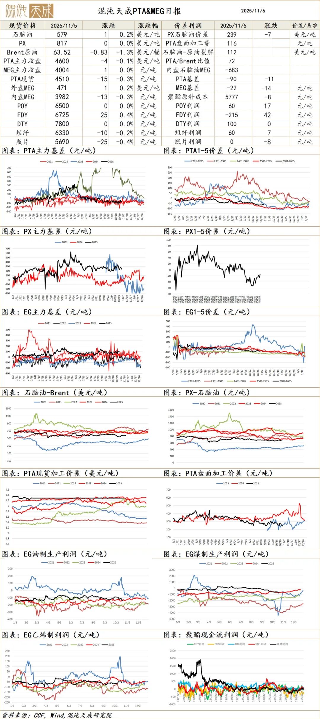结论:PX、PTA自身供需正处于强弱转换预期中。目前看行业反内卷潜在抓手在限开工或限价,淘汰产能方面可能性暂不大,但无实质进展。目前看原油震荡、基本面偏弱与反内卷中性,暂不共振,预计还是跟随原油波动为主。
