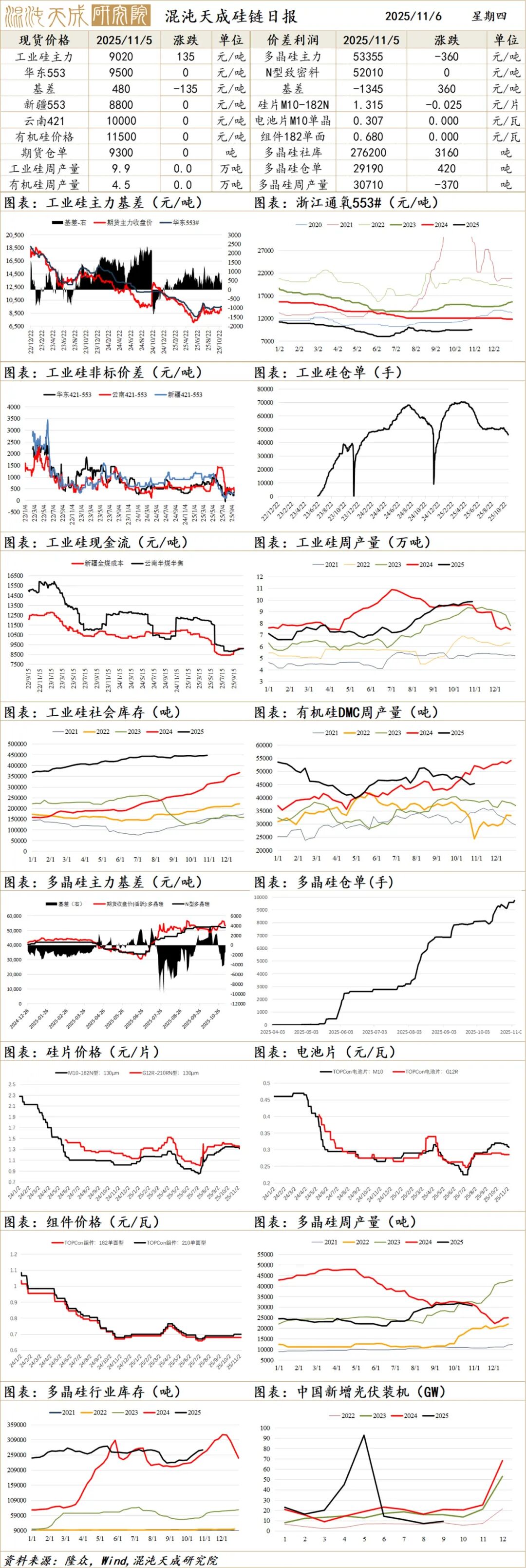 1、反内卷实际影响不大,核心供需预计边际改善,但仍累库。10月供增需稳,11月供稳需弱。目前看西南产量见顶,但合盛仍有复产预期,总产量预计枯水期边际改善,累库收窄,但格局暂未变。