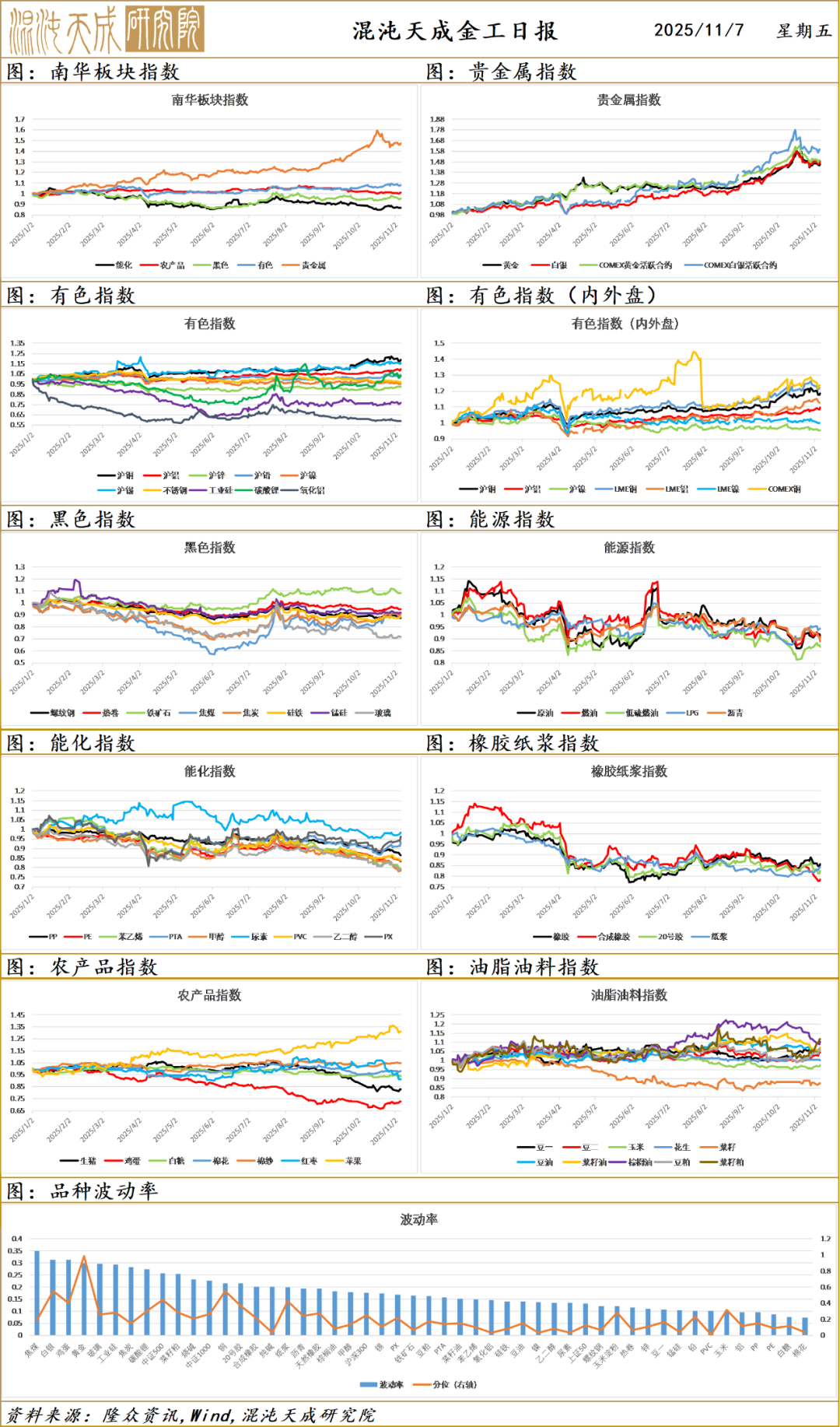 政府关门仍在持续,最新的消息面:第13次表决仍未通过,美政府 “停摆” 继续,此次关门受到“两党关系”的催化,仍具备较大的风险。近期的航空风险成为市场预估促使美国政府开门的主要因素,而政府开门预期一定程度上也是对于市场流动性的正向推动,因为TGA账户资金释放;近期关于最高法院对于特朗普关税政策的审议和州选举上的失利都是近期的风险上行驱动,贵金属在流动性风险未进一步发酵后出现了反弹。