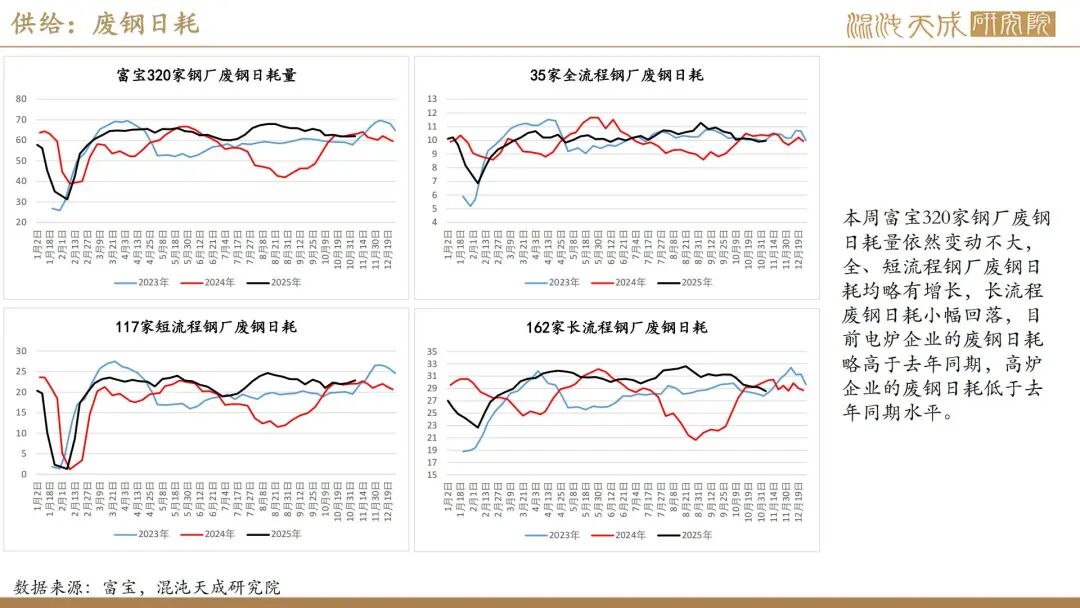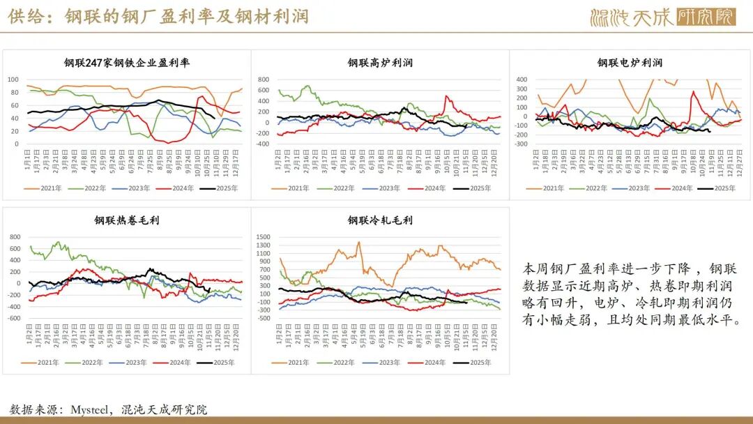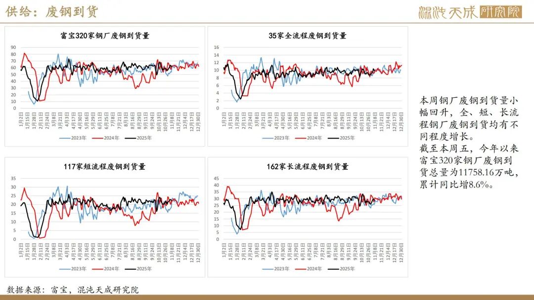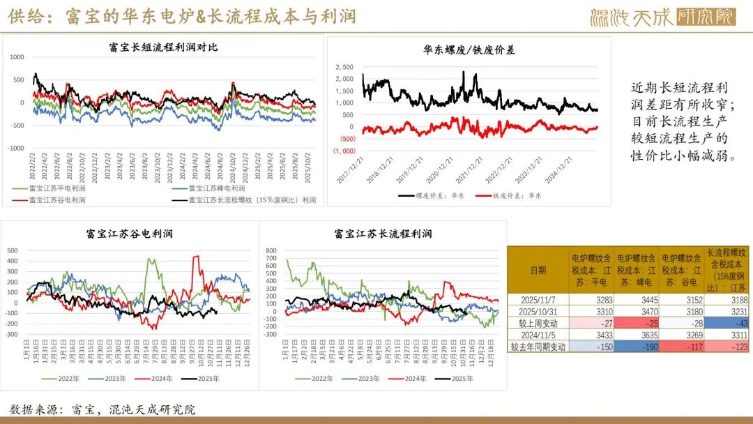 利润&成本:钢厂盈利率继续下降至39.83%,本周高炉即期利润、热卷毛润略有回升,电炉即期利润、冷轧毛润在低位继续小幅走弱。富宝数据显示当前华东长流程含税成本在3188元/吨,电炉谷电成本在3152元/吨,平电成本在3283元/吨。