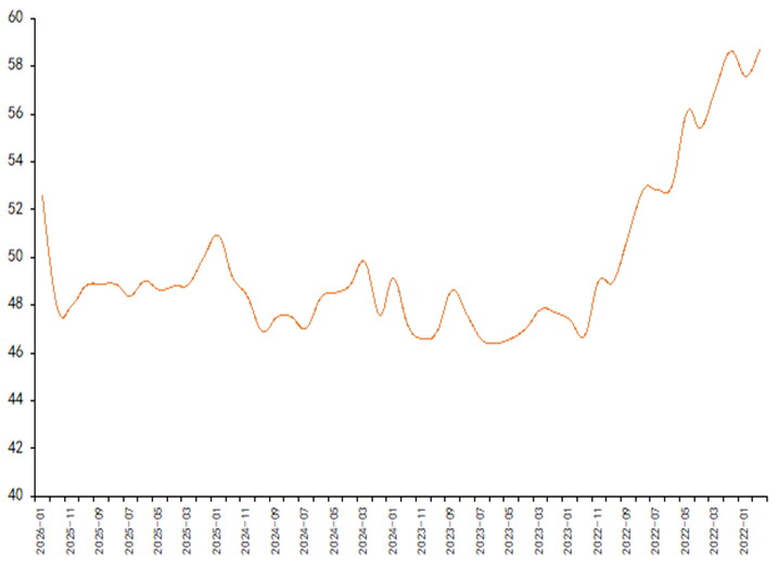 图为美国ISM制造业PMI走势