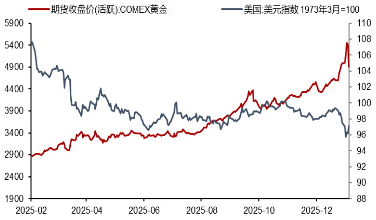 受特朗普多次公开表态影响,包括称“美元像悠悠球一样波动是合理的”“不担心美元下跌”等言论,市场对美元长期走弱的预期升温。1月30日,美元指数一度下探至95.56,创下近4年新低。即便美联储在1月议息会议上暂停降息,维持联邦基金利率于3.50%~3.75%区间,且声明对就业和通胀表述趋于乐观,也未能扭转美元颓势。