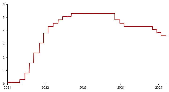 图为美国有效联邦基金利率(单位:%)