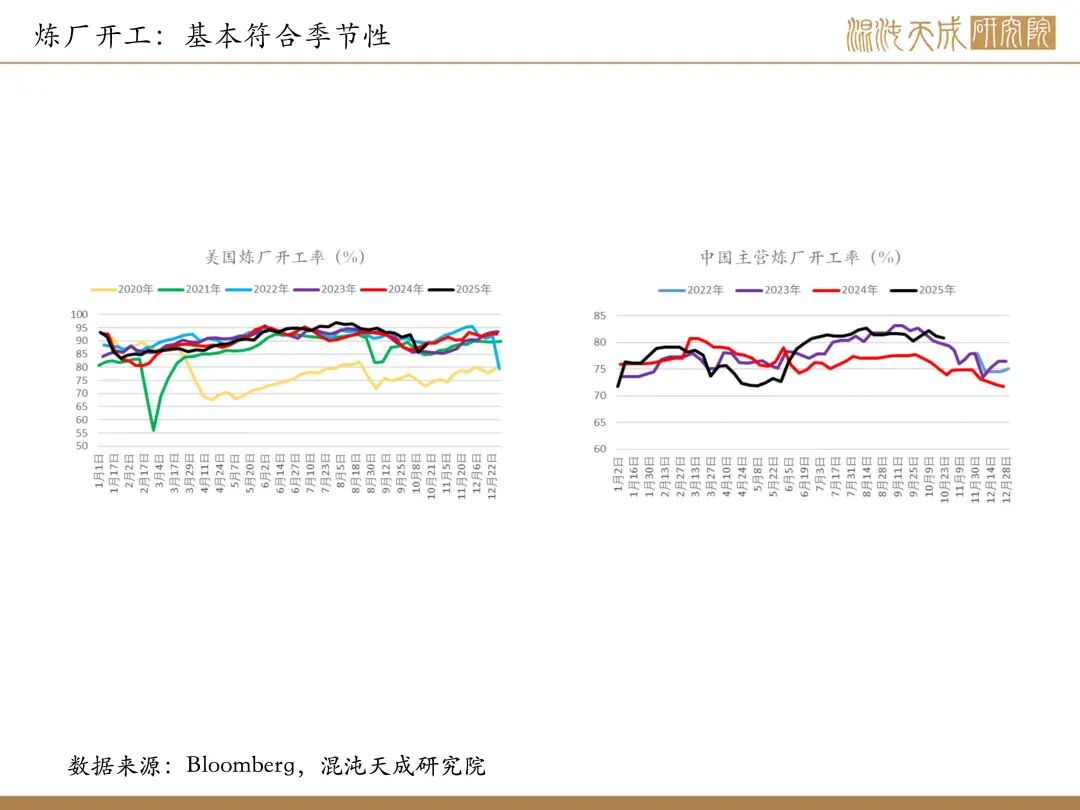 供应:欧美政府制裁俄罗斯原油企业和运输船队,对应出口220万桶/日,目前或以影响印度对俄油的采购,造成短期的贸易转向,但实际影响仍有待观察,美俄外交和原油套利网络仍有可能抵消制裁影响。