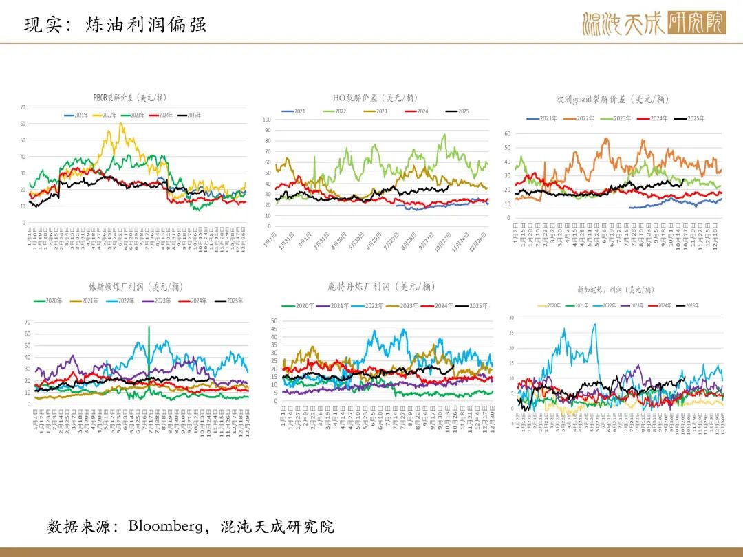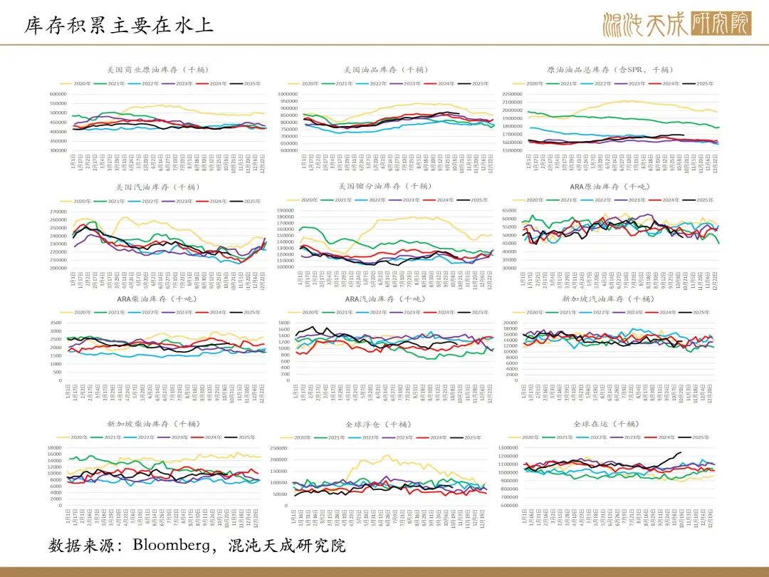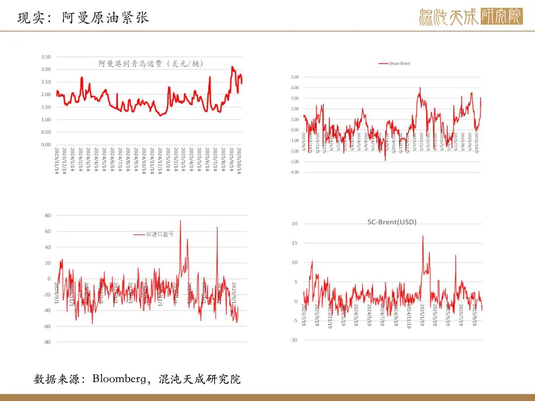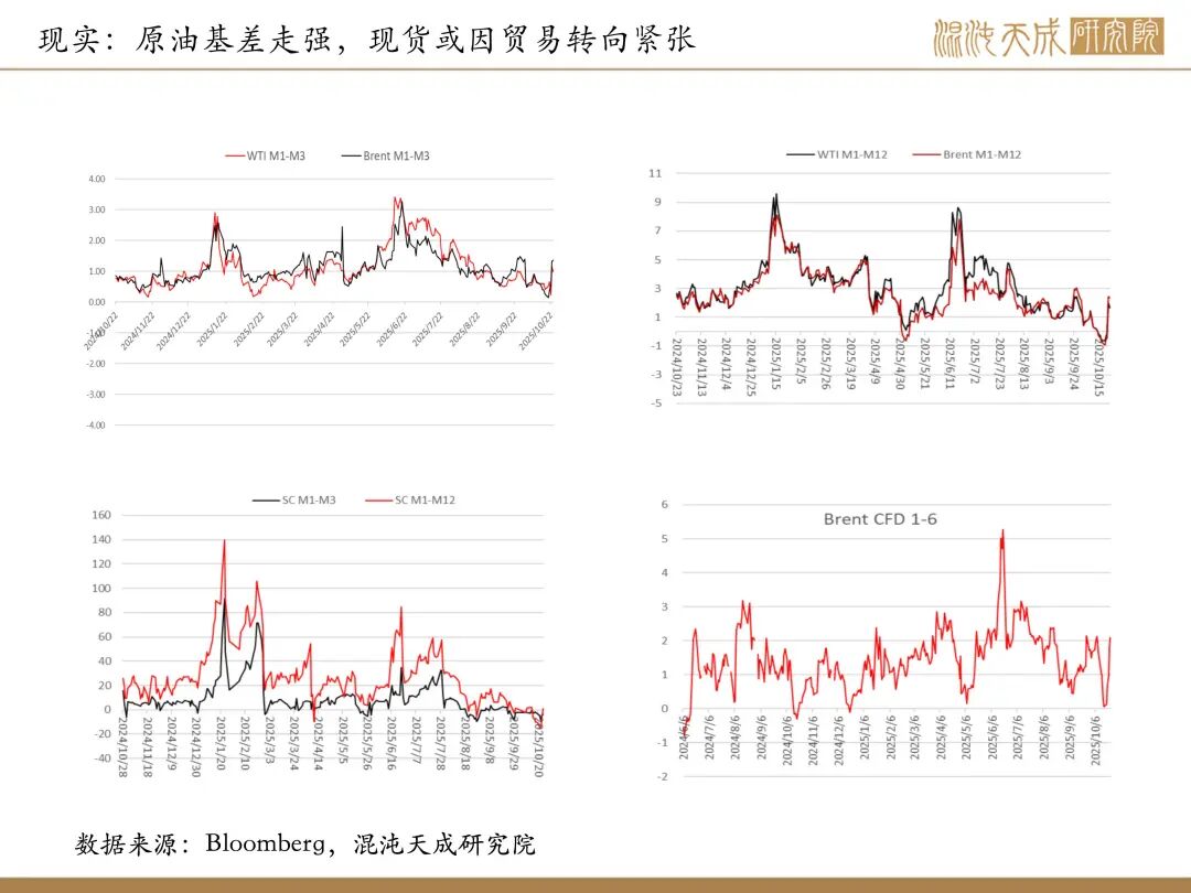 库存价差:库存累积主要发生在水上,原油现货因为贸易转向紧张,中东原油和近月基差走强。